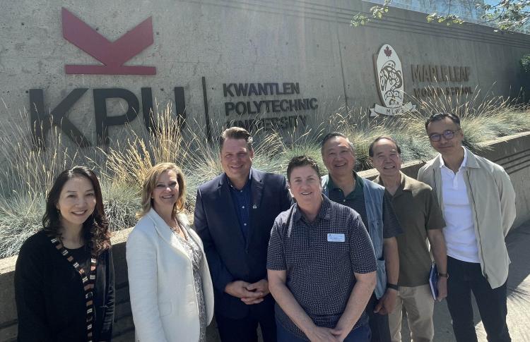 Pictured outside KPU Richmond is Kim Ye; Sharmen Lee, Dean, Faculty of Health at KPU; Randall Heidt, KPU Foundation CEO; Drew Dennis, Advancement Officer at KPU; T.W. Wong, Director, Chan Sisters Foundation; Carson Wu, Director, Chan Sisters Foundation; David Chan, Director, Chan Sisters Foundation. Not pictured: Candice Tsang, Director, Chan Sisters Foundation.