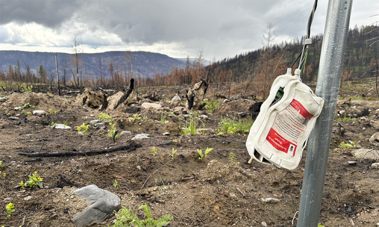 Jed Prentice holds a sample jar used to collect data for long-term wildfire research in the Okanagan.