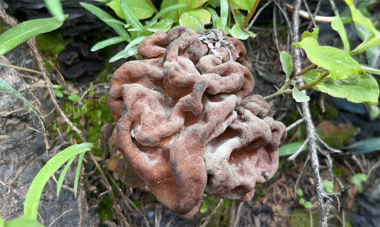 A large polypore mushroom, likely a red-belted conk (Fomitopsis mounceae), one of the many fungi noted by students during their fieldwork.