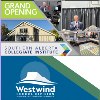 Westwind School Division was pleased to take part in the grand opening of the Southern Alberta Collegiate Institute (SACI) on February 6, marking an important milestone in expanding career-focused learning opportunities for students across southern Alberta.