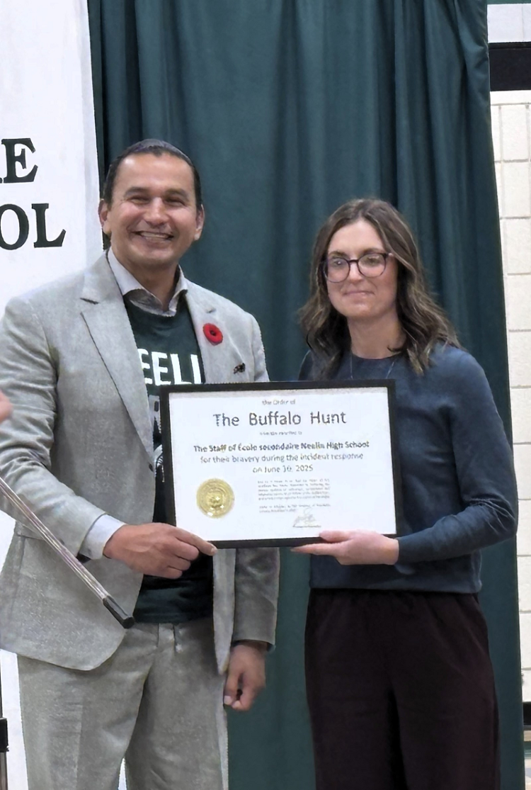 Brandon School Division congratulates the staff of École secondaire Neelin High School, who were honoured by Premier Wab Kinew with the Order of the Buffalo Hunt one of Manitoba's highest civilian awards for their courage, compassion, and quick response during the events of June 10, 2025.