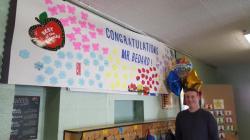 Seawood is celebrating their Outstanding principal Mr. Bedard! The school wanted to acknowledge him for the wonderful award that was announced this week - Canada's Outstanding Principal Award.  Every student signed a large banner displayed in the hall with helium balloons and enough cake for the entire student body and staff.