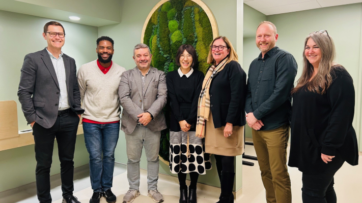 Photo: from left to right: Dawson employees involved in renovating the 2H.02 room Maxwell Jones, Samuel Vallery Saint-Hilaire, Elias Azar, Inhwa Choi, Diane Gauvin, Geoff Kloos and Christine Lister.