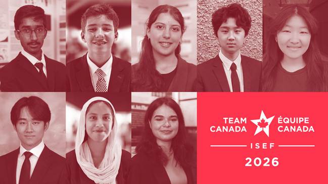 Youth Science Canada is proud to announce the eight students who will represent the country as Team Canada-ISEF at the Regeneron International Science and Engineering Fair (ISEF) 2026, the world's leading youth STEM competition, to be held in Phoenix, Arizona, May 9 to 15. The eight candidates were identified at the 2025 Canada-Wide Science Fair and have since participated in a YSC-led development program focused on international competition readiness and effective STEM communication. At ISEF, they will compete with nearly 2,000 students from over 60 countries, presenting projects that span fields from robotics and environmental engineering to medical research and computational biology.
