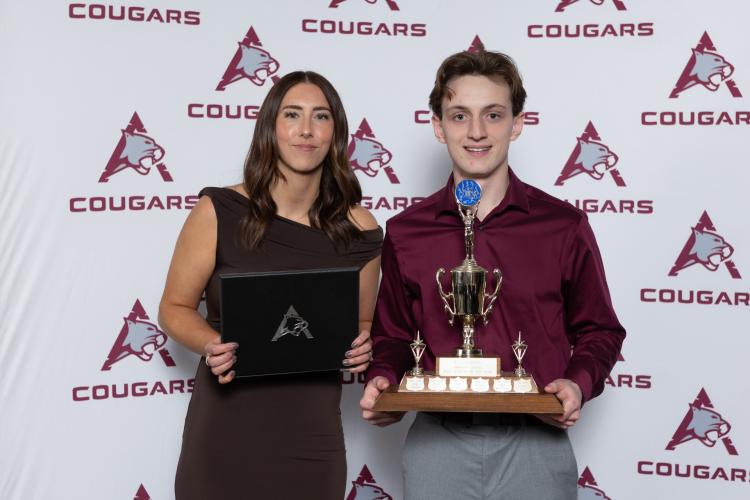 Cougars Athletics also presented 22 awards to student athletes, including MVP and Coaches Choice awards for each Cougars team. Nathaniel Berube was named Male Athlete of the Year and MVP, while Kylee Peake received Female Athlete of the Year along with an MVP nod. This adds to a stellar season where Peake played an integral role in the Cougars success, including a whopping 16 kills in a pivotal final game enroute to the Cougars Women's volleyball squad capturing the MCAC championship.