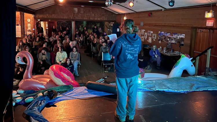 Along the way, guests listened to student-produced podcasts, watched short films and explored collaborative art displays. One of the evening's most memorable moments was a live performance where students shared spoken-word reflections on identity, memory and belonging while seated in kayaks and canoes inside the hall.