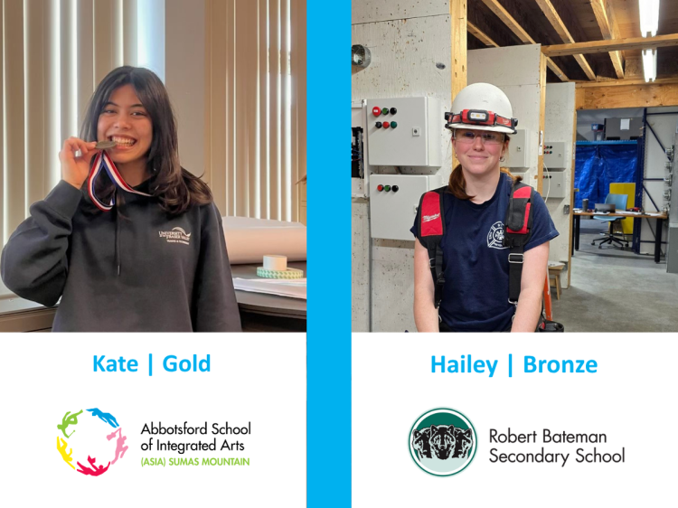 Kate Brown (ASIA Sumas) earned Gold in Architectural Drafting and will advance to the national competition. Hailey McIntosh (Robert Bateman Secondary) earned Bronze in Electrical Wiring, highlighting the depth of talent across the district.