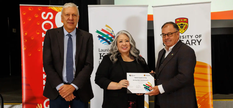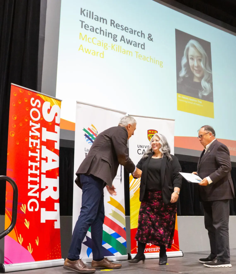 Fabiola Aparicio-Ting receives her McCaig-Killam Teaching Award. Photo Credit: Riley Brandt, University of Calgary