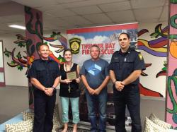 "Thunder Bay Fire Rescue hopes these awards encourage continued support and implementation of fire safety practices in other schools," said Deputy Fire Chief Dave Paxton. "Principal Tabor-John and the rest of the staff and students at Sherbrooke School provide a great example to all schools and institutions in the community. Making the correct decision in an emergency situation under challenging circumstances demonstrates a commitment to student safety."
