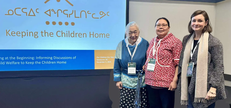 From left: Elder Levinia Brown, Inuk researcher Rosanna Amarudjuak and Patti Johnston at the Our Children Our Way Conference, Vancouver, 2025. Photo Credit: Robyn Long